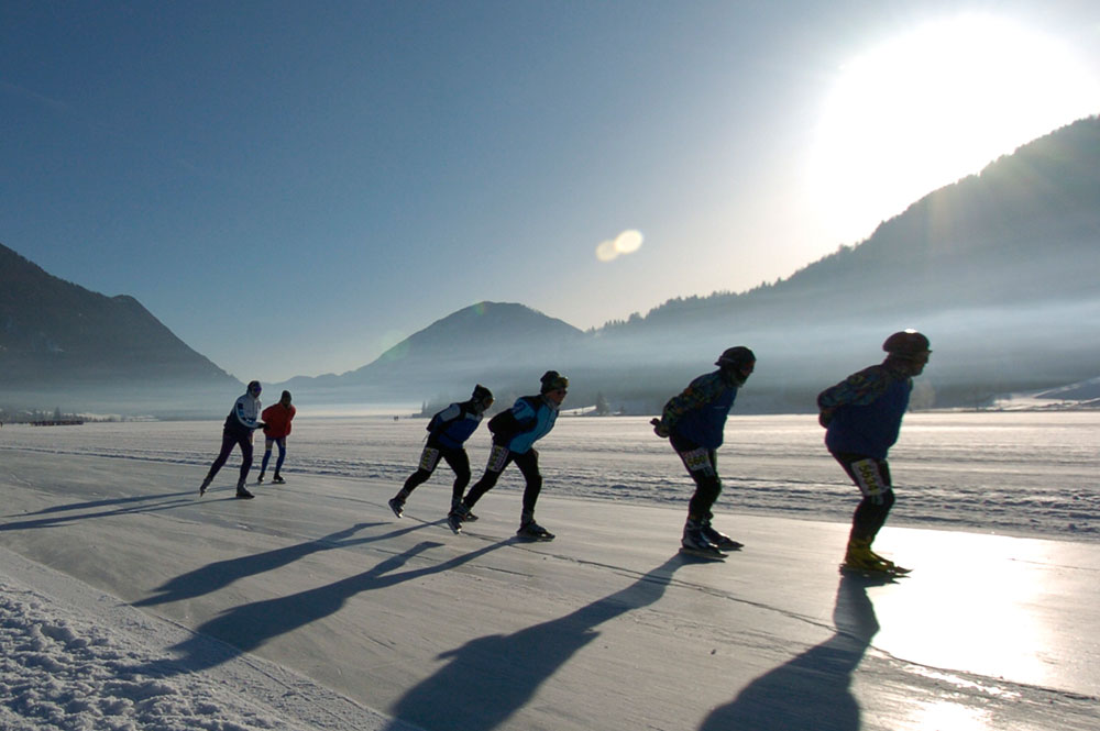 Bei einer präparierten Eisfläche von 6,5 Quadratkilometer bleibt kein Eisläuferwunsch unerfüllt. Egal ob Hobbyläufer oder Profi. Für jeden ist der Weissensee geeignet.