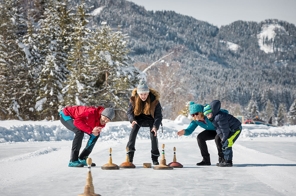 Der Kärntner Traditionssport Eisstockschießen ist am Weißensee besonders beliebt. Die Spielregeln sind leicht verständlich: Zwei Mannschaften zu meist je vier Spielern versuchen ihren jeweils eigenen Eisstock so nah wie möglich an die „Daube“ (ähnlichen einem Eishockeypuck) zu schießen. Einfach erklärt, erfordert diese Sportart aber sehr viel Präzision und Können. Der eisglatte Spieluntergrund erschwert diesen tollen Freiluftsport noch ein wenig.